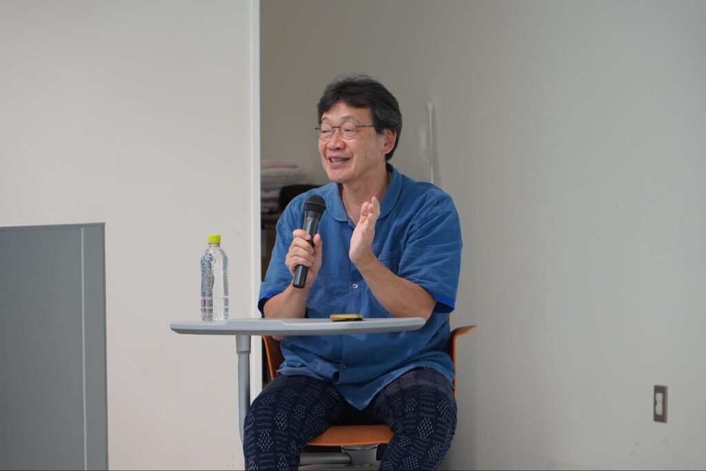 第2回は、デザイン学部教授 萩原修先生がモデレーターとして進行を務めました。萩原先生は12年前に明星大学でデザイン学部が始まった頃から教鞭を取っており、Meisei Crossing Baseではデザイン面からサポートしています。